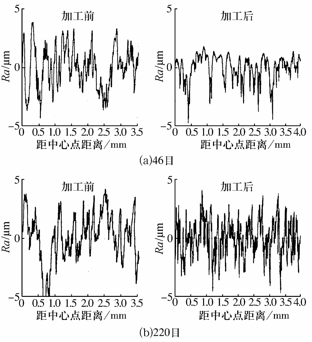 圖5 磨料流加工前后滾子內(nèi)孔表面粗糙度